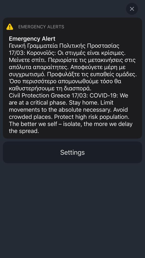 Κορονοϊός: Νέο μήνυμα από την Γραμματεία Πολιτική Προστασίας