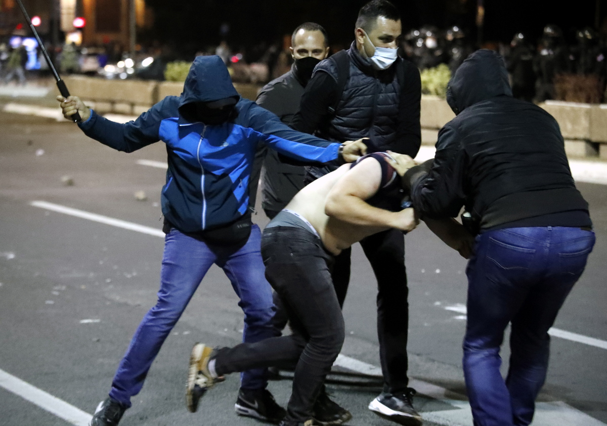 Η κατάσταση με το κορονοϊό ήταν πρόφαση για την συγκέντρωση που διοργανώθηκε – όπως είπε – «από ακροδεξιά στοιχεία και φασιστικές οργανώσεις». Ανέφερε ότι 43 αστυνομικοί τραυματιστήκαν και κάποιοι δέχθηκαν επίθεση με μαχαίρι, ενώ έδειξε και φωτογραφίες από τα τραύματα των αστυνομικών. Ο Βούτσιτς ανέφερε ότι έβλαψε το κύρος της Σερβίας στο εξωτερικό η χθεσινή διαδήλωση κάτι που όπως εκτίμησε θα βλάψει και τη διαπραγματευτική θέση της Σερβίας στον διάλογο για το Κόσοβο που θα συνεχιστεί την Κυριακή στις Βρυξέλλες. Διεμήνυσε ότι οι αρχές θα πατάξουν κάθε προσπάθεια κατάλυσης της τάξης και τόνισε ότι υπήρχε και εξωτερικός δάκτυλος για τα επεισόδια που προκλήθηκαν εχθές βράδυ.