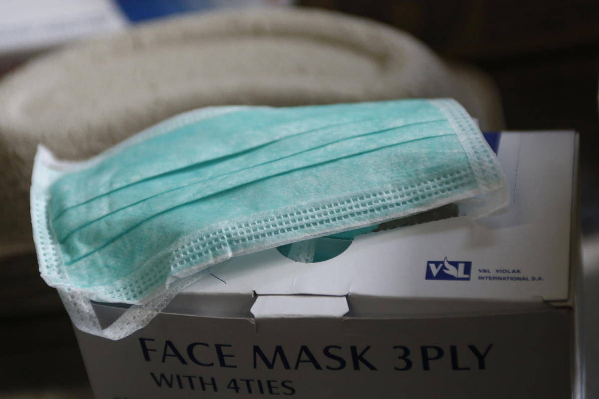 ÌÜóêåò óôï åóùôåñéêü êïíôÝéíåñ ðïõ èá ÷ñçóéìïðïéåßôáé ùò óçìåßï äéáëïãÞò, ãéá ôçí õðïäï÷Þ ðåñéóôáéôêþí áóèåíþí ìå Covid-19, óôï íïóïêïìåßï ÃåííçìáôÜò, ÁèÞíá ÐÝìðôç 5 Ìáñôßïõ 2020. ÁÐÅ-ÌÐÅ/ÁÐÅ-ÌÐÅ/ÃÉÁÍÍÇÓ ÊÏËÅÓÉÄÇÓ