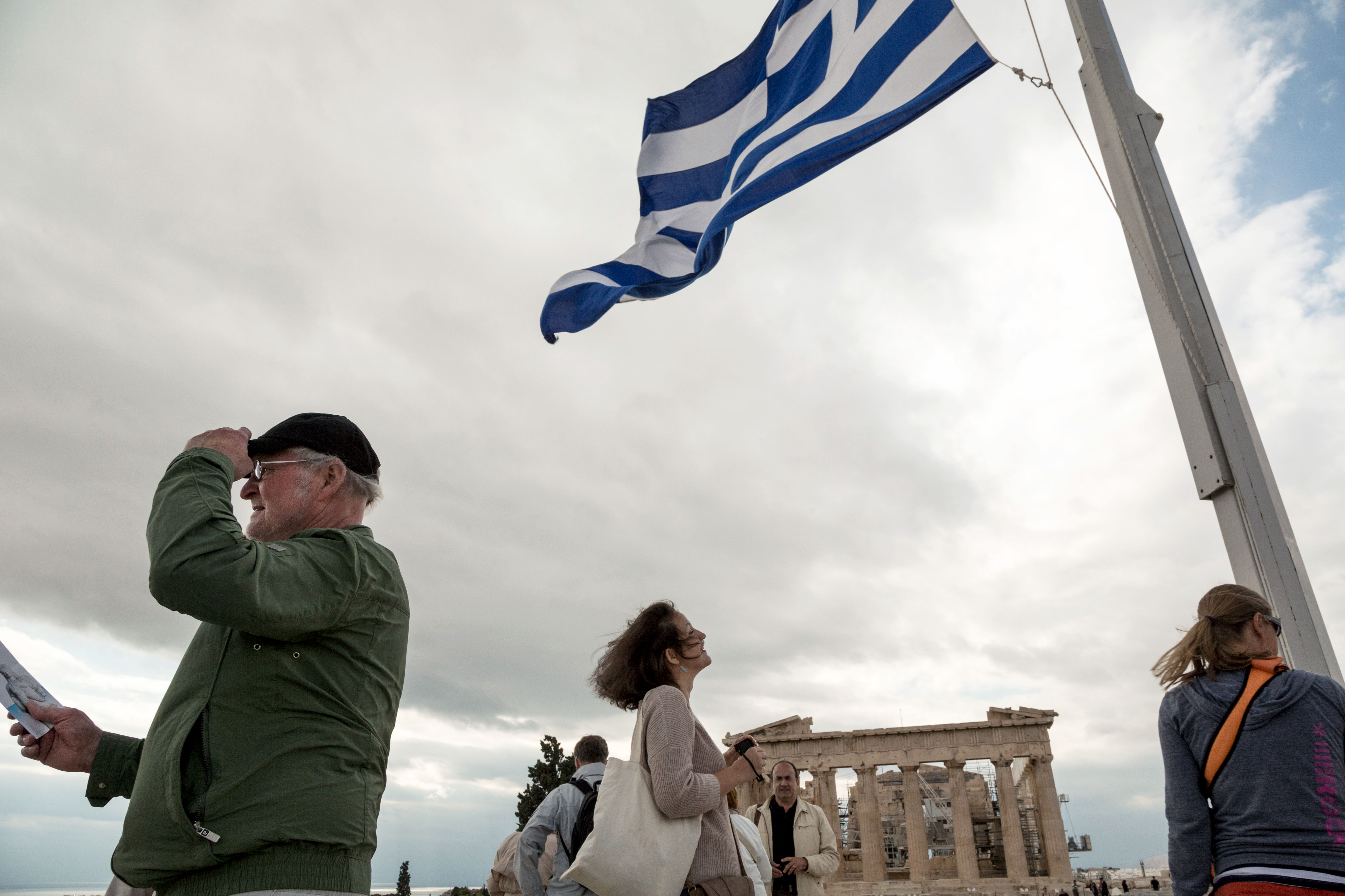 Τουρίστες, ελληνική σημαία, Παρθενώνας. Όλα τα σύμβολα μαζεμένα.