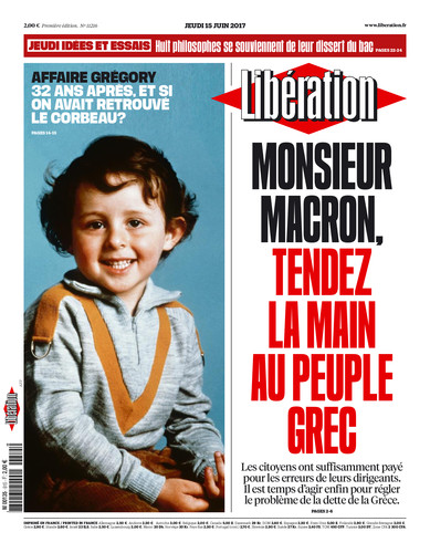 «Κύριε Μακρόν, δώστε το χέρι στον ελληνικό λαό» είναι ο πρωτοσέλιδος τίτλος της σημερινής «Λιμπερασιόν» που αφιερώνει πέντε σελίδες στο θέμα του ελληνικού χρέους και στο σημερινό Eurogroup στο Λουξεμβούργο.