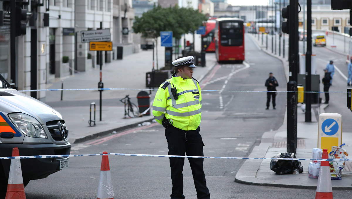 Δύο επιβάτες παραμένουν εγκλωβισμένοι μέσα στο λονδρέζικο λεωφορείο με το χαρακτηριστικό κόκκινο χρώμα, διευκρινίζεται στην αστυνομική ανακοίνωση.