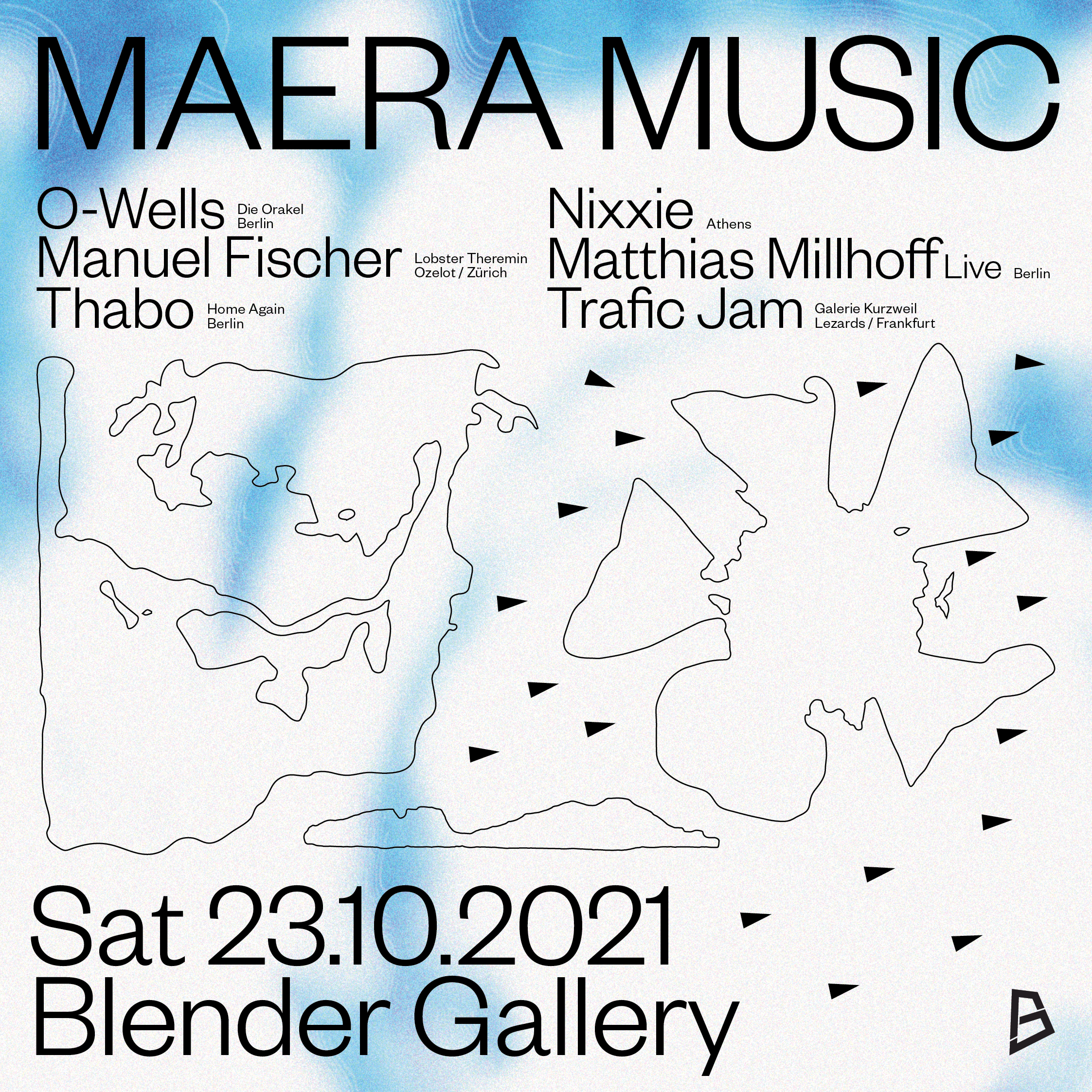 Στην έκθεση θα παρευρίσκονται τα 5 από τα 6 μέλη της Maera Music, καθώς και ένας guest star υψηλού επιπέδου, ο O-Wells, ο οποίος είναι μόνιμος dj στο Berghain και στο Panorama bar, στο Βερολίνο (πιθανώς και τα πιο cool μέρη σε όλη την πόλη).
