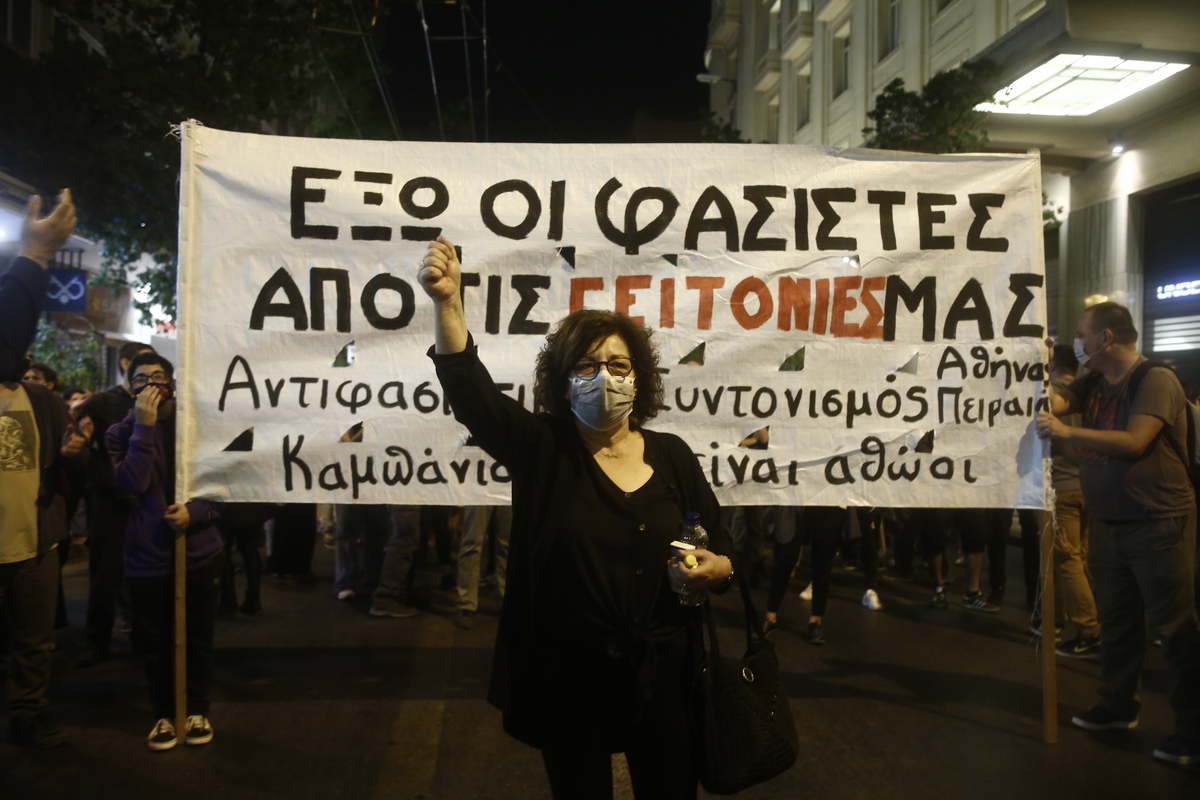 Ç ÌÜãäá Öýóóá, ìçôÝñá ôïõ äïëïöïíçìÝíïõ Ðáýëïõ Öýóóá, óõììåôÝ÷åé óå ðïñåßá äéáìáñôõñßáò óôï êÝíôñï ôçò ÁèÞíáò, ìå áöïñìÞ ôç óõìðëÞñùóç Ýíáò ÷ñüíïò áðü ôçí êáôáäßêç ôçò íáæéóôéêÞò- åãêëçìáôéêÞò ïñãÜíùóçò ×ñõóÞ ÁõãÞ, ÐÝìðôç 07 Ïêôùâñßïõ 2021. ÌÝëç áñéóôåñþí ïñãáíþóåùí êáé åñãáôéêþí óùìáôåßùí ôçò ÁôôéêÞò ðñáãìáôïðïßçóáí óõãêÝíôñùóç êáé ðïñåßá äéáìáñôõñßáò áðü ôï Åöåôåßï óôï Óýíôáãìá, ãéá íá ðÜñïõí ìÝñïò óôç ìåãÜëç áíôéöáóéóôéêÞ óõíáõëßá, ðïõ äéïñãÜíùóáí ïé Öïéôçôéêïß Óýëëïãïé ôçò ÁèÞíáò, ìå áöïñìÞ ôçí óõìðëÞñùóç åíüò ÷ñüíïõ áðü ôçí êáôáäßêç ôçò ×ñõóÞò ÁõãÞò. ÁÐÅ-ÌÐÅ/ÁÐÅ-ÌÐÅ/ÃÉÁÍÍÇÓ ÊÏËÅÓÉÄÇÓ