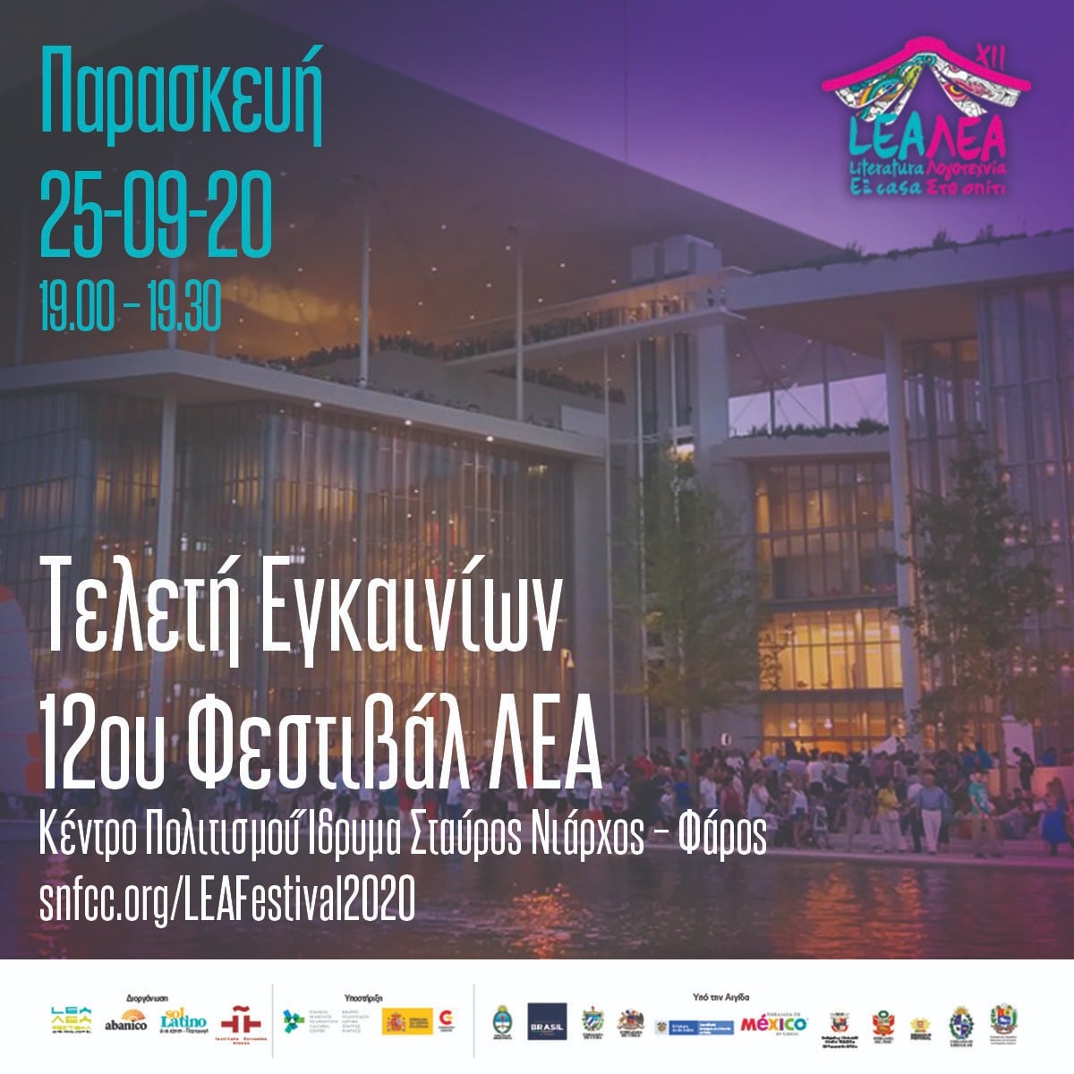 Η εκδήλωση, θα μεταδοθεί μέσω Live Streaming στο snfcc.org/LEAFestival2020.