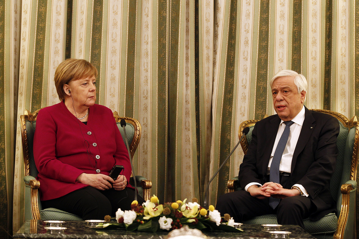 Ο Πρόεδρο της Δημοκρατίας Προκόπης Παυλόπουλος συνομιλεί με τη Γερμανίδα καγκελάριο Άνγκελα Μέρκελ κατά τη διάρκεια της συνάντησής τους, την Παρασκευή 11 Ιανουαρίου 2019, στο Προεδρικό Μέγαρο. Η Γερμανίδα καγκελάριος πραγματοποιεί διήμερη επίσημη επίσκεψη στην Αθήνα. ΑΠΕ-ΜΠΕ/ΑΠΕ-ΜΠΕ/ΑΛΕΞΑΝΔΡΟΣ ΒΛΑΧΟΣ