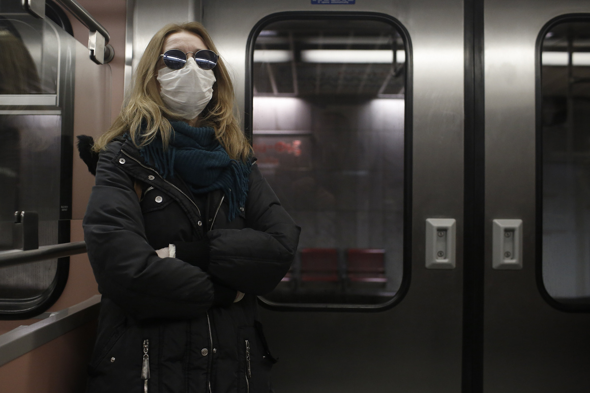 Επιβάτης φορώντας προστατευτική μάσκα και γάντια σε συρμό του μετρό, Αθήνα, Δευτέρα 16 Μαρτίου 2020. Κλειστά παραμένουν λόγω του κορονοϊού μετά από απόφαση της κυβέρνησης, μπαρ, καφετέριες, εστιατόρια με εξαίρεση τα μαγαζιά που έχουν άδεια για delivery και take away. ΑΠΕ-ΜΠΕ/ΑΠΕ-ΜΠΕ/ΚΩΣΤΑΣ ΤΣΙΡΩΝΗΣ