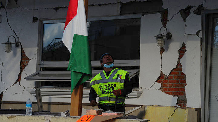 Κτίριο καταρρέει με τους ανθρώπους να τρέχουν να σωθούν.