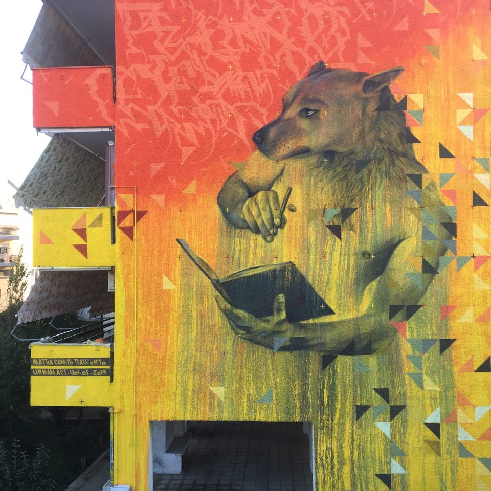 Ο τίτλος της τοιχογραφίας είναι “A day in a diary of a Voiceless” και είναι αφιερωμένη στα αδέσποτα ζώα. Απεικονίζει έναν σκύλο σε σώμα ανθρώπου, να γράφει στο ημερολόγιο του, την καθημερινότητά του.