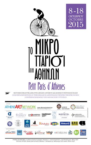 To «petit Paris d’ Athenes 2015» με θέμα την κουλτούρα των καφέ και των μπιστρό συνδιοργανώνουν το Αθηναϊκό καλλιτεχνικό δίκτυο και ο Οργανισμός πολιτισμού, αθλητισμού και νεολαίας του Δήμου Αθηναίων.