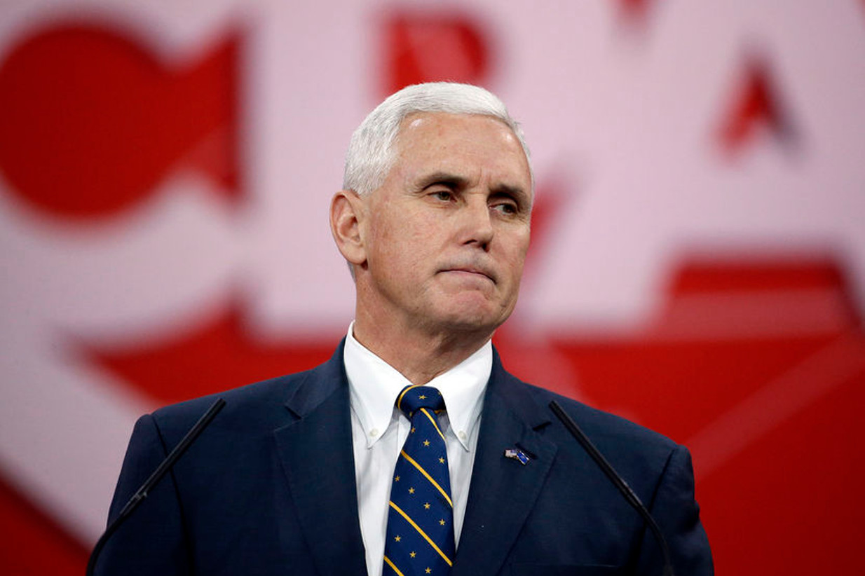 Indiana Gov. Mike Pence pauses while speaking at the Conservative Political Action Conference (CPAC) Friday, Feb. 27, 2015 in National Harbor, Md. (AP Photo/Alex Brandon)