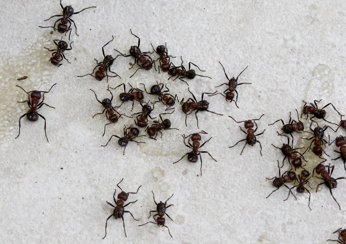 epa06379310 Ants feed off sugar left behind by campers at a retreat cottage in Magaliesburg, Johannesburg, South Africa, 09 December 2017. Large ant colonies are common in the bush veld that is common vegetation of this area of the country. EPA/KIM LUDBROOK