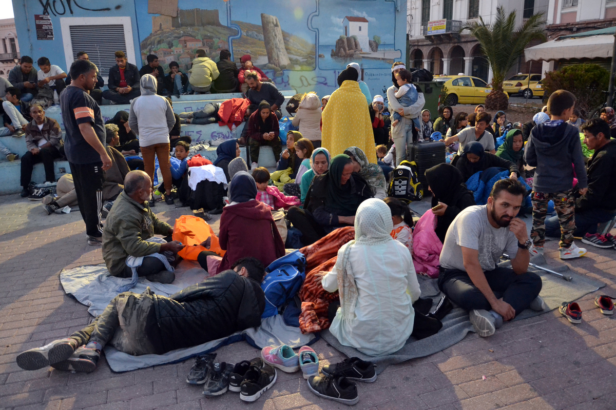 Αφγανοί πρόσφυγες και μετανάστες (περίπου 150), που ήρθαν από τον καταυλισμό της Μόριας, δείχνουν διατεθειμένοι να περάσουν τη νύχτα τους, στην πλατεία Σαπφούς στο κέντρο της Μυτιλήνης, το Σάββατο 21 Οκτωβρίου 2017. Αιτήματα τους η μεταφορά τους από τη Μόρια που δεν είναι ευχαριστημένοι, η ασφαλής και σε συνθήκες υγιεινής διαμονή τους στη Λέσβο και η ταχεία διεκπεραίωση των αιτημάτων ασύλου που έχουν υποβάλλει ώστε να μετακινηθούν γρήγορα στην ηπειρωτική Ελλάδα κατ’ αρχάς. ΑΠΕ ΜΠΕ/ΑΠΕ ΜΠΕ/STR