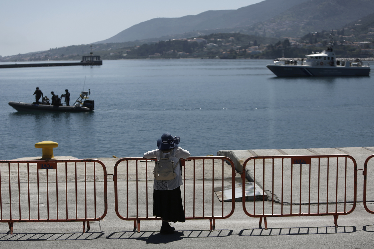 Γυναίκα στο λιμάνι της Μυτιλήνης, παρακολουθεί τα σκάφη του Λιμενικού που περιπολούν λόγω της επίσκεψης του Πάπα Φραγκίσκου (ΔΕΝ ΕΙΚΟΝΙΖΕΤΑΙ) με τον Οικουμενικό Πατριάρχη Βαρθολομαίο (ΔΕΝ ΕΙΚΟΝΙΖΕΤΑΙ), τον Αρχιεπίσκοπο Αθηνών και Πάσης Ελλάδος Ιερώνυμο (ΔΕΝ ΕΙΚΟΝΙΖΕΤΑΙ) και τον Πρωθυπουργό Αλέξη Τσίπρα (ΔΕΝ ΕΙΚΟΝΙΖΕΤΑΙ), όπου πραγματοποιήθηκε δέηση στη μνήμη όσων χιλιάδων ανθρώπων μεγάλων και μικρών, που χάθηκαν στην προσπάθεια, Σάββατο 16 Απριλίου 2016. Επίσημη επίσκεψη του Πάπα Φραγκίσκου του Οικουμενικού Πατριάρχη Βαρθολομαίου, του Αρχιεπισκόπου Αθηνών και Πάσης Ελλάδος Ιερώνυμου και του πρωθυπουργού Αλέξη Τσίπρα στη Λέσβο, στην προσπάθεια τους για την ευαισθητοποίηση της παγκόσμιας κοινής γνώμης στο προσφυγικό-μεταναστευτικό. Με 10 πρόσφυγες που ανήκουν σε ευάλωτες κοινωνικά ομάδες, μέλη μονογονεϊκών οικογενειών, μητέρες με παιδιά, ανθρώπους με κινητικά προβλήματα ή προβλήματα υγείας, από διάφορες εθνικότητες, θα ξεκινήσει το ταξίδι της επιστροφής, στις 3.15 μετά το μεσημέρι, μετά την ολοκλήρωση της επίσκεψης του στη Λέσβο, ο Πάπας Φραγκίσκος. ΑΠΕ-ΜΠΕ/ΑΠΕ ΜΠΕ/ ΓΙΑΝΝΗΣ ΚΟΛΕΣ