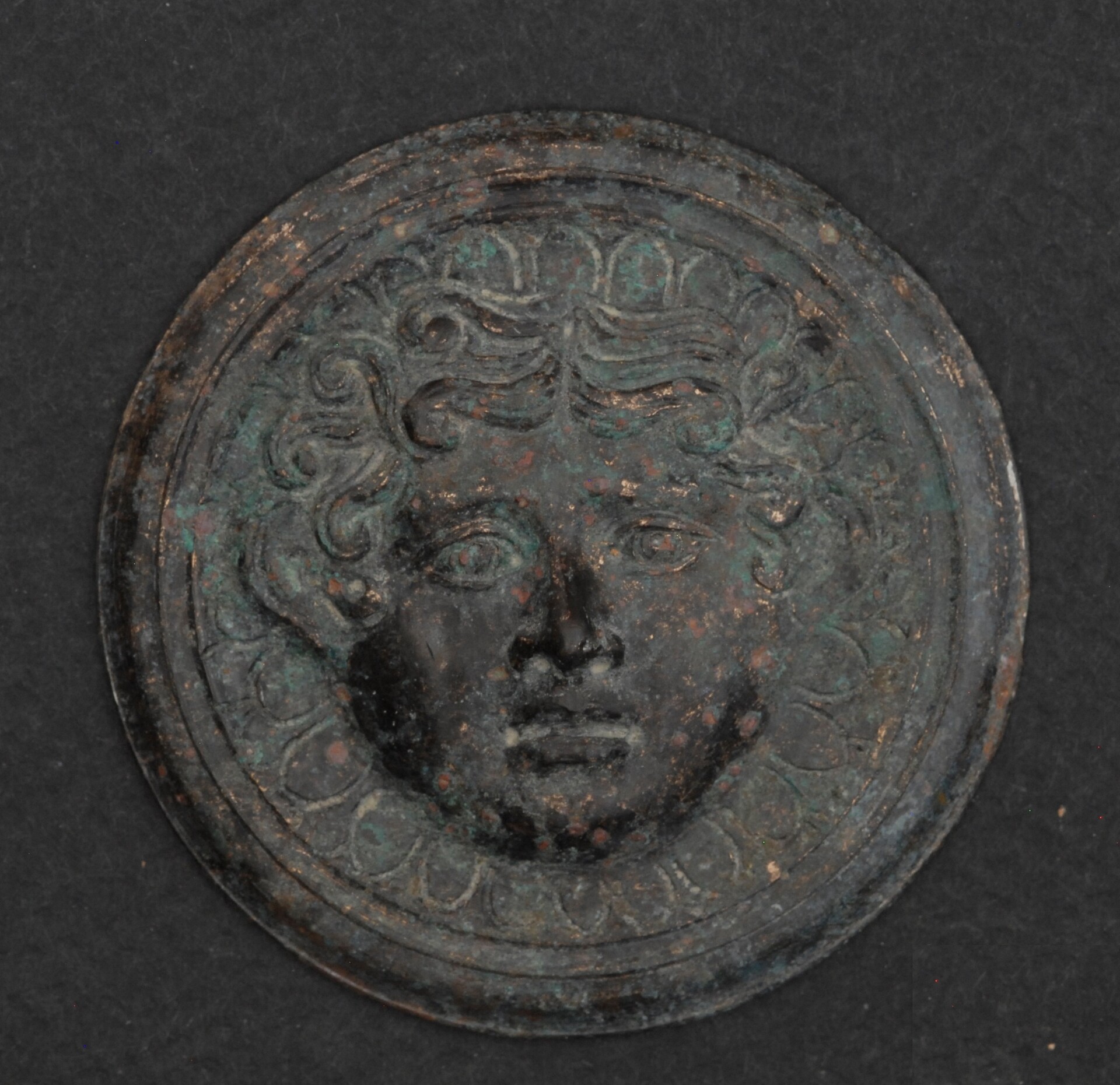 Η νεκρή γυναίκα έφερε στο στόμα της χρυσό έλασμα – πιθανόν επιστόμιο και δέκα διπλά χρυσά φύλλα δάφνης και ήταν ραμμένα – φέρουν και τις οπές -σε κάποιο υλικό είτε σε δέρμα είτε σε ύφασμα -ίσως κάποιο πέπλο-, είτε σε κάποιο στεφάνι που είχε στο κεφάλι. Στο δεξί της χέρι βρέθηκαν χρυσές κλωστές, σαν να είχε κάτι κεντημένο πάνω στο χέρι της. «Όλα αυτά φαίνονται να ήταν κάπου ραμμένα, ίσως στο ρούχο που φορούσε η νεκρή ή σε κάποιο ύφασμα με το οποίο την κάλυψαν», σημειώνει η κ. Χονδρογιάννη. Η γυναίκα είχε επίσης μια οστέινη βελόνη και μια λίθινη χάντρα και ήταν κτερισμένη με τέσσερα πήλινα μυροδοχεία, έναν πήλινο αμφορέα, ένα γυάλινο μυροδοχείο.