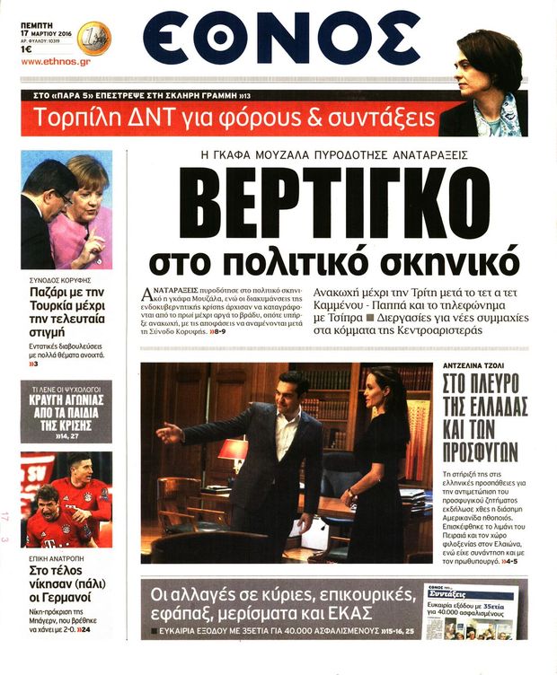 ΕΘΝΟΣ: «Βέρτιγκο στο πολιτικό σκηνικό»