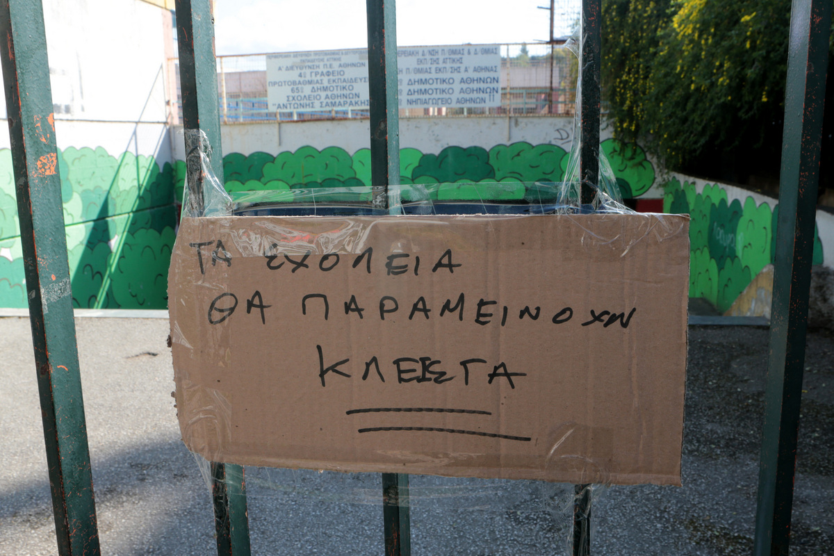 Κλειστό σχολείο στο κέντρο της Αθήνας, Τετάρτη 11 Μαρτίου 2020. Στην αναστολή της λειτουργίας όλων των εκπαιδευτικών ιδρυμάτων της χώρας προχωράει η κυβέρνηση, προκειμένου να μειωθεί η διασπορά του κορωνοϊού στη χώρα, όπως ανακοίνωσε ο υπουργός Υγείας Βασίλης Κικίλιας. Το μέτρο αφορά όλες τις βαθμίδες της δημόσιας και ιδιωτικής εκπαίδευσης και θα έχει άμεση εφαρμογή. Θα ισχύσει για τις επόμενες 14 ημέρες και αφορά τους βρεφονηπιακούς σταθμούς, τα σχολεία, τα ΙΕΚ και τα πανεπιστήμια, ιδιωτικά και δημόσια. Το μέτρο όπως εξήγησε Κικίλιας είναι προληπτικό και έχει ως κύριο στόχο να μειωθεί η διασπορά του ιού στην κοινότητα. ΑΠΕ-ΜΠΕ/ΑΠΕ-ΜΠΕ/Παντελής Σαίτας