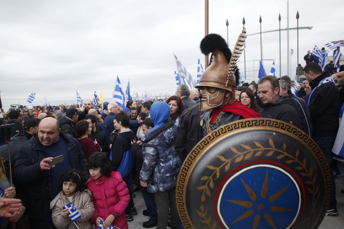 Χιλιάδες πολίτες από όλη την Ελλάδα συμμετέχουν στο συλλαλητήριο για την ονομασία των Σκοπίων, προκειμένου να μην υπάρχει ο όρος "Μακεδονία" στην ονομασία της γειτονικής χώρας, στην πλατεία του Λευκού Πύργου, Θεσσαλονίκη, Κυριακή 21 Ιανουαρίου 2018. ΑΠΕ-ΜΠΕ/ ΑΠΕ-ΜΠΕ/ ΝΙΚΟΣ ΑΡΒΑΝΙΤΙΔΗΣ