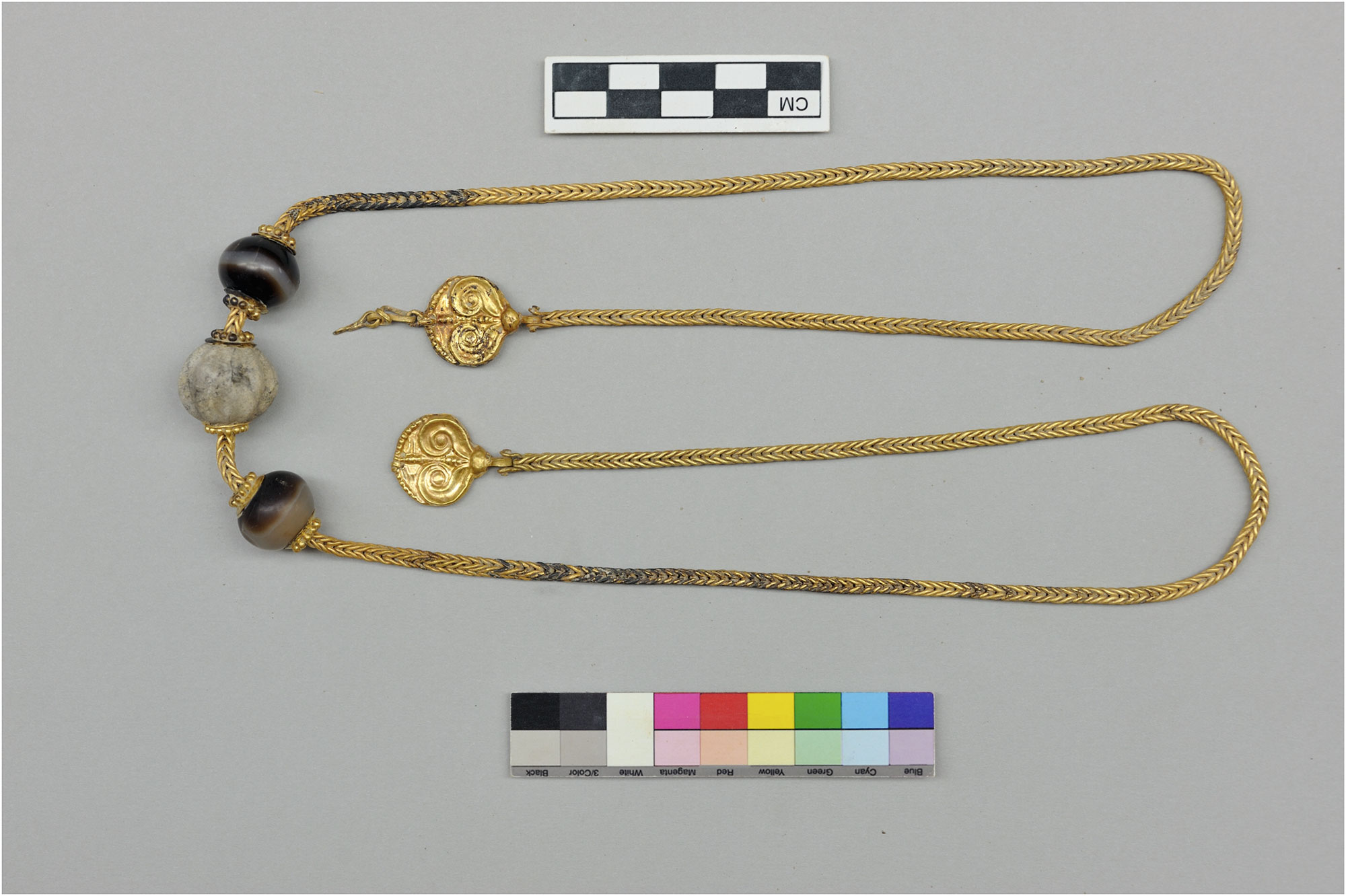 Μια χρυσή αλυσίδα με ασύμμετρες αποστάσεις μεταξύ των τριών χαντρών της, που έγιναν επίτηδες για άγνωστο λόγο, η απουσία άλλων ταφών στη γύρω περιοχή και η ύπαρξη οστράκων κάτω από τον σκελετό που θα βοηθήσουν στην ακρίβεια της χρονολόγησής του, ήταν μερικές από τις πληροφορίες που έδωσαν σήμερα το μεσημέρι το ζεύγος των Αμερικανών αρχαιολόγων, Τζακ Ντέιβις και Σάρον Στόκερ, ως προς τα πρόσφατα ευρήματα της Πύλου.