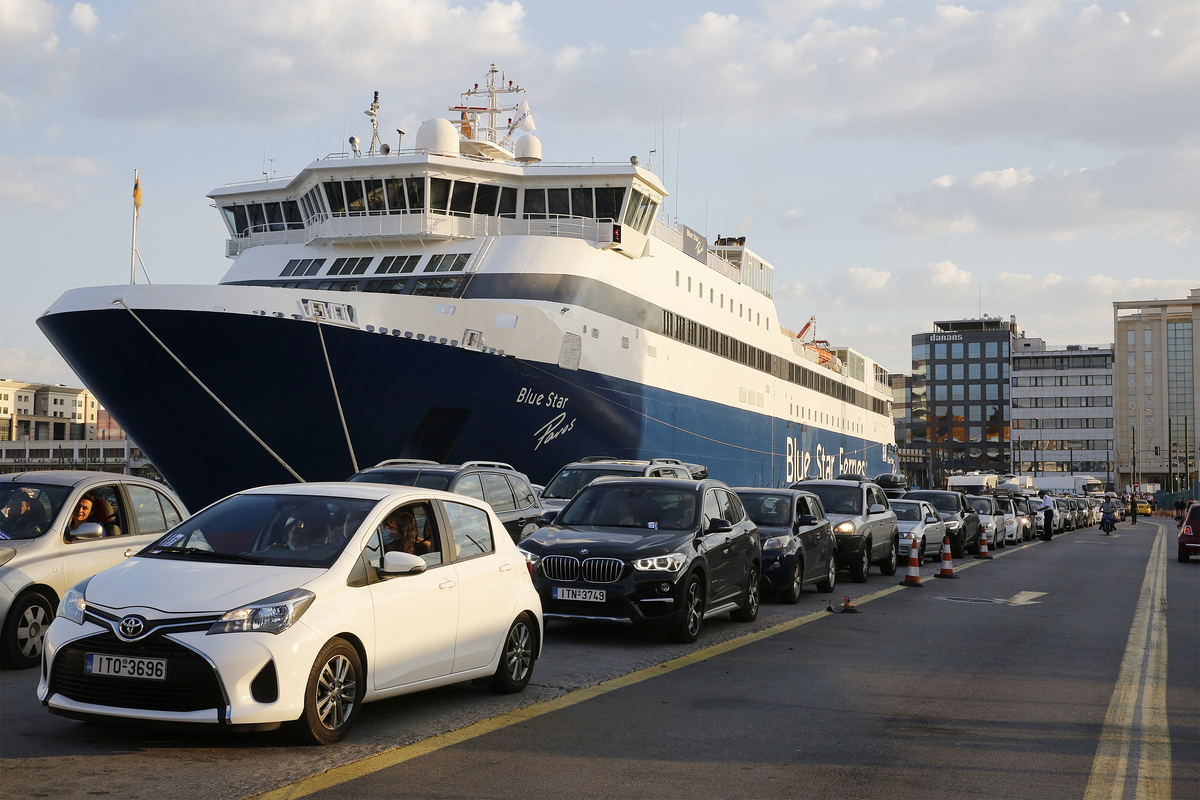 Πλήθος ταξιδιωτών και αυτοκινήτων επιβιβάζονται στα πλοία για τις καλοκαιρινές διακοπές στα νησιά του Αιγαίου, τηρώντας τα μέτρα ενάντια στην εξάπλωση της πανδημίας covid 19, στο λιμάνι του Πειραιά, Σάββατο 3 Ιουλίου 2021. ΑΠΕ-ΜΠΕ/ΑΠΕ-ΜΠΕ/ ΑΛΕΞΑΝΔΡΟΣ ΒΛΑΧΟΣ ΑΠΕ- ΜΠΕ/ΑΠΕ- ΜΠΕ/ΑΛΕΞΑΝΔΡΟΣ ΒΛΑΧΟΣ