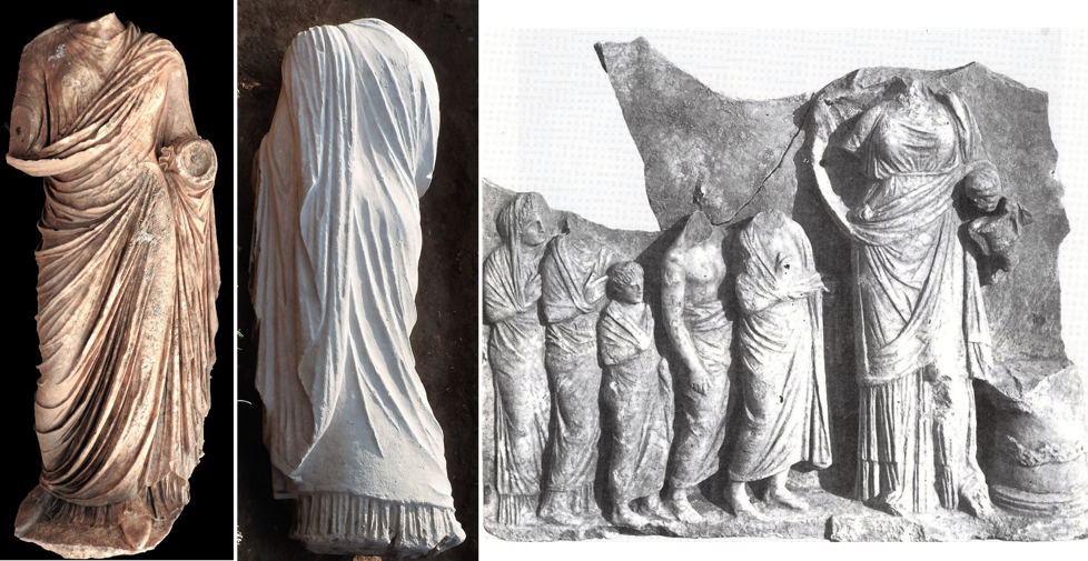 Σύμφωνα με τις πληροφορίες που δίνει το υπουργείο, «το άγαλμα παρίστανε γυναίκα η οποία φορούσε ποδήρη χιτώνα και ιμάτιο. Το ιμάτιο στερεωνόταν αριστερά στον ώμο και το χέρι, απ’ όπου κρεμόταν με πλούσιες πτυχές. Η μια του άκρη, περνούσε πίσω από την πλάτη, κάτω από τη δεξιά μασχάλη και ριχνόταν λοξά πίσω, πάνω από τον αριστερό ώμο. Στη θέση του δεξιού βραχίονα, επιφάνειες που διατηρούν τους συνδέσμους από πρόσθετα μέρη, δείχνουν ότι η μορφή έκανε τη χειρονομία της ανακάλυψης, δηλαδή, της ανάσυρσης του ιματίου με το δεξί χέρι προς τα έξω και πάνω, που ήταν χαρακτηριστική εγγάμων γυναικών, κατά την αρχαιότητα, και με την οποία συχνά απεικονιζόταν η Υγεία, σύζυγος ή κόρη του Ασκληπιού. Μια πρώτη εκτίμηση τοποθετεί το έργο στους αυτοκρατορικούς Ρωμαϊκούς χρόνους. Το άγαλμα μεταφέρθηκε σε αποθήκη στο Ασκληπιείο για φύλαξη, καθαρισμό και συντήρηση».