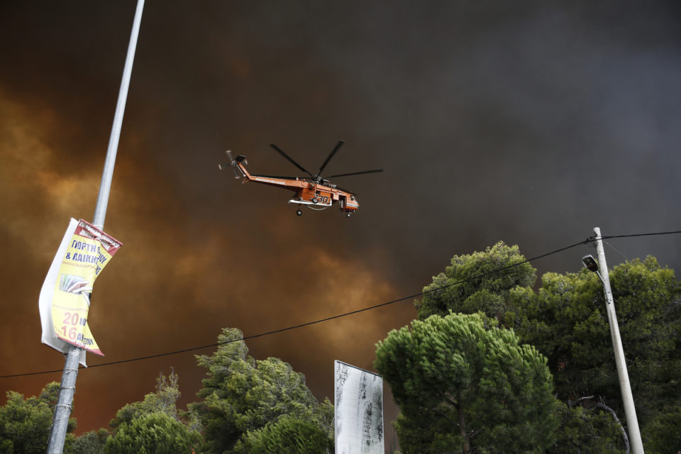 Ελικόπτερο επιχειρεί για την κατάσβεση της πυρκαγιάς στο Νέο Βουτζά Αττικής, Δευτέρα 23 Ιουλίου 2018. ΑΠΕ ΜΠΕ/ΑΠΕ ΜΠΕ/ΑΛΕΞΑΝΔΡΟΣ ΒΛΑΧΟΣ