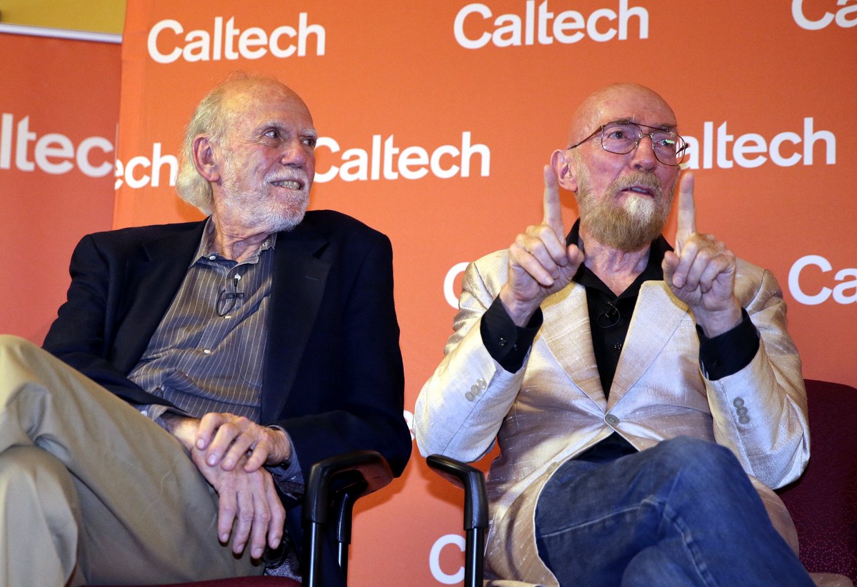 epa06242714 Caltech Richard P. Feynman Professor of Physics, Emeritus, Kip S. Thorne (R) and Caltech Ronald and Maxine Linde Professor of Physics, Emeritus, Barry C. Barish (L) speak during a press conference after winning the 2017 Nobel Prize in Physics for his Laser Interferometer Gravitational-Wave Observatory (LIGO) work in Pasadena, California, USA, 03 October 2017. Thorne, Barish and Rainer Weiss won the Physics Nobel prize it was announced 03 October 2017. The three US scientists were awarded 'for decisive contributions to the LIGO detector and the observation of gravitational waves'. EPA/MIKE NELSON