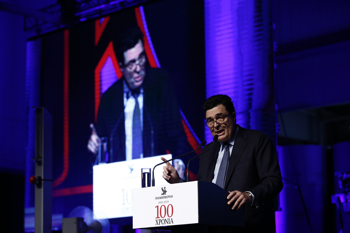 O διευθυντής της εφημερίδας "Η Καθημερινή", Αλέξης Παπαχελάς, μιλάει στην εκδήλωση για τα 100 χρόνια της εφημερίδας που πραγματοποιείται στο Κορωπί Αττικής, κοντά στην Αθήνα Κυριακή 24 Νοεμβρίου 2019. ΑΠΕ-ΜΠΕ/ΑΠΕ-ΜΠΕ/ΓΙΑΝΝΗΣ ΚΟΛΕΣΙΔΗΣ