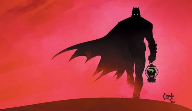 Εικόνες που θυμίζουν τις ταινίες Mad Max. Ένας “αμλετικός” Μπάτμαν περπατά κάτω από έναν κόκκινο ουρανό κρατώντας στο χέρι του το ακρωτηριασμένο κεφάλι του Τζόκερ (το οποίο χαμογελά ακόμη) και περπατά προς την τελευταία του περιπέτεια.