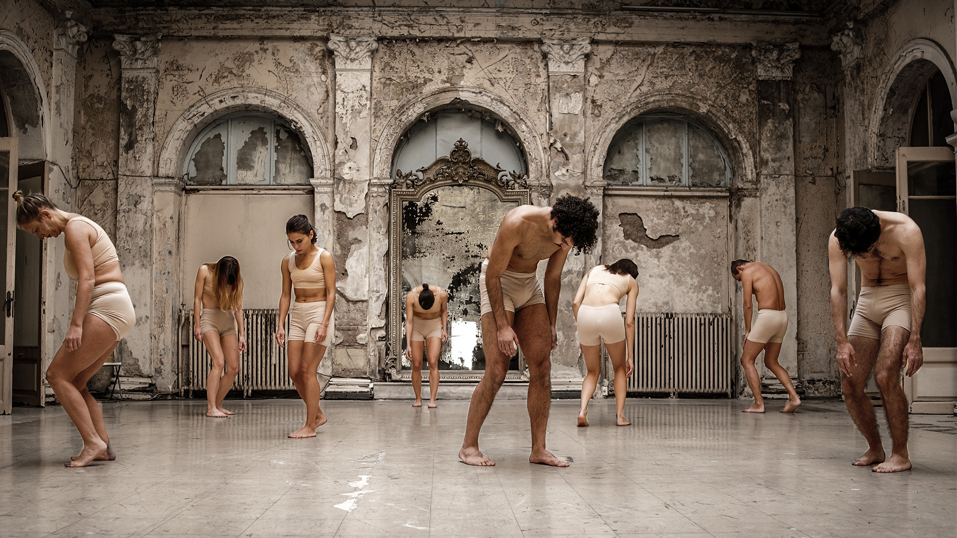 Σ’ ένα εγκαταλειμμένο ξενοδοχείο, όπου ο χρόνος έχει παγώσει και ο χώρος λειτουργεί ως δωμάτιο, ενδοσκοπικής, περισυλλογής, οχτώ σώματα, μετέωρα μεταξύ δράσης και μη δράσης, μοιάζουν έτοιμα να κινηθούν για μια τελευταία φορά. Κύκνειο άσμα της ανθρώπινης κίνησης ή μια ωδή για το τέλος του κόσμου; Η μουσική επένδυση του έργου, εκτενή αποσπάσματα από το Ρέκβιεμ του Μότσαρτ, δημιουργεί μια υποβλητική ατμόσφαιρα και καλλιεργεί, προοδευτικά, ένα λεπτοφυές κινητικό κύκλωμα που διαπερνάει τα οχτώ σώματα, δημιουργώντας μια, σχεδόν, κυτταρική σύνδεση μεταξύ τους. Παράλληλα, το κινούμενο σκηνικό set λειτουργεί καλειδοσκοπικά και προκαλεί, με τη σειρά του, μια ασύμπτωτη θέαση, υποβάλλοντας έτσι ένα χορευτικό μετέωρο μεταξύ ορατού και αοράτου, που σταδιακά μετατρέπει τον χώρο από δωμάτιο περισυλλογής του ατόμου, σε μια ανάμνηση ενός ακινητοποιημένου παρόντος.