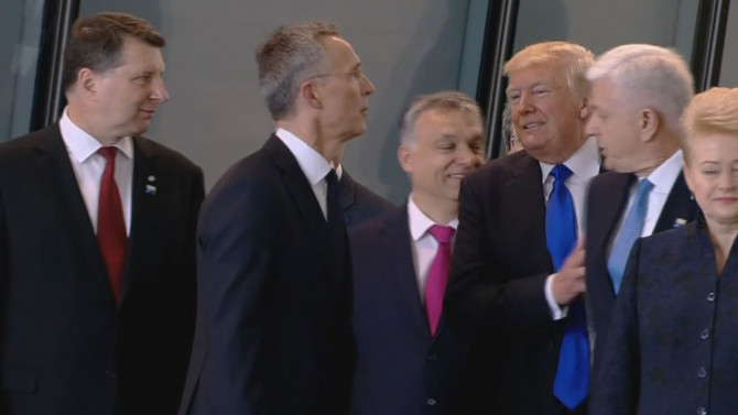 Ο πρωθυπουργός της βαλκανικής χώρας τόλμησε να περπατήσει μπροστά από τον πρόεδρο των ΗΠΑ και εκείνος με μια καθόλου διακριτική κίνηση έσπρωξε τον Μάρκοβιτς για να είναι ο ίδιος μπροστά-μπροστά στο γκρουπ.
