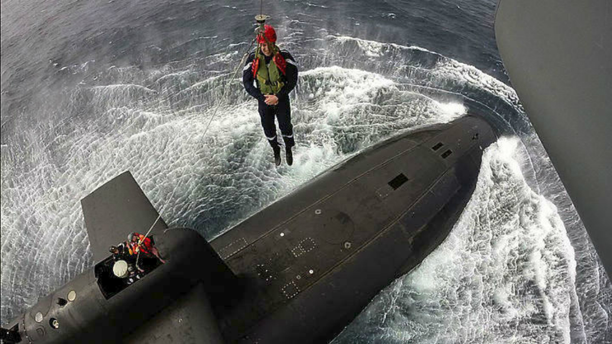 Ο Γάλλος πρόεδρος μετέβη με ελικόπτερο και κατέβηκε δεμένος με σχοινί στο πυρηνικό υποβρύχιο. Τη στιγμή αποτύπωσε φωτογραφία που αναρτήθηκε στον επίσημο λογαριασμό του Γάλλου Προέδρου στο Twitter.