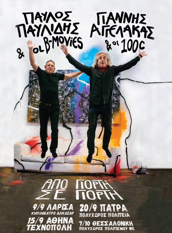 Δύο ξεχωριστοί καλλιτέχνες, ο Γιάννης Αγγελάκας και ο Παύλος Παυλίδης έρχονται μαζί για 4 φθινοπωρινές συναυλίες το Σάββατο 9 Σεπτεμβρίου στο Κηποθέατρο Αλκαζάρ (Λάρισα), την Παρασκευή 15 Σεπτεμβρίου στην Τεχνόπολη (Αθήνα), την Τετάρτη 20 Σεπτεμβρίου στον πολύχωρο Πολιτεία (Πάτρα) και το Σάββατο 7 Οκτωβρίου στον Πολύχωρο Πολιτισμού WE (Θεσσαλονίκη).