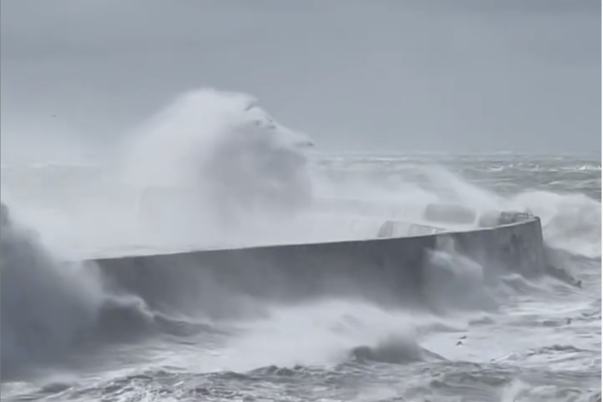 Ο φωτογράφος του BBC Τζεφ Όβερς, απαθανάτιζε τα τεράστια κύματα στο λιμάνι του Newhaven του ανατολικού Σάσεξ, στη νότια Αγγλία, όταν σε ένα από τα «κλικ» του είδε μια «μορφή» που του θύμισε τον μυθολογικό θεό της θάλασσας.