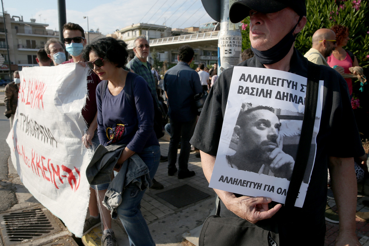 Διαδηλωτές συμμετέχουν σε συγκέντρωση συμπαράστασης στον κρατούμενο φοιτητή Βασίλη Δημάκη, Αθήνα Δευτέρα 25 Μαΐου 2020. Ο Βασίλης Δημάκης βρίσκεται σε απεργία πείνας και δίψας με αίτημα να συνεχίσει τις σπουδές του. ΑΠΕ-ΜΠΕ/ΑΠΕ-ΜΠΕ/ΟΡΕΣΤΗΣ ΠΑΝΑΓΙΩΤΟΥ
