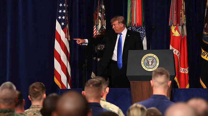 Ο πρόεδρος των Ηνωμένων Πολιτειών Ντόναλντ Τραμπ άνοιξε το δρόμο για την αύξηση των αμερικανικών στρατιωτών στο Αφγανιστάν χθες σε τηλεοπτικό διάγγελμα όπου παρουσίασε τη νέα στρατηγική του για την περιοχή, υποστηρίζοντας ότι η απόσυρση από τη μακροβιότερη στρατιωτική συμπλοκή της Αμερικής δεν πρέπει να γίνει εσπευσμένα.