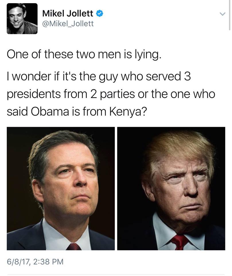«Παρά τις τόσες ψεύτικες δηλώσεις και τα ψέματα, ολοκληρωτική και πλήρης δικαίωση… και ΟΥΑΟΥ, ο Κόμεϊ είναι leaker!» έγραψε ο Τραμπ στο Twitter στα πρώτα σχόλιά του μετά τη χθεσινή ακρόαση της Επιτροπής Πληροφοριών της αμερικανικής Γερουσίας.