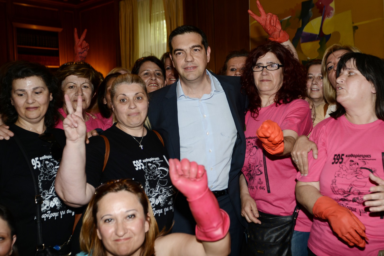 Τις περίπου 50 καθαρίστριες υποδέχθηκε ο Πρωθυπουργός στον προαύλιο χώρο του Μεγάρου Μαξίμου.