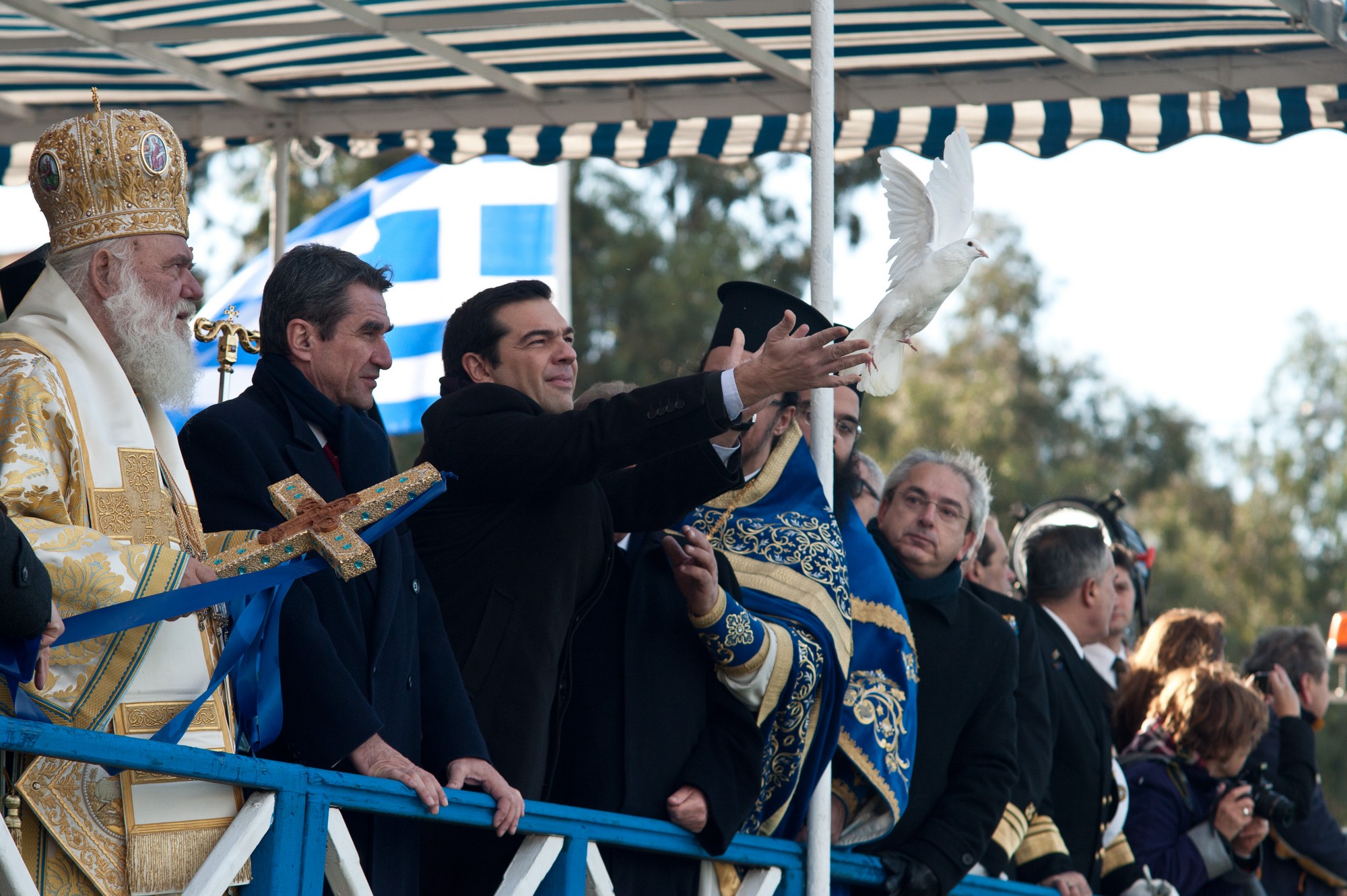 Οι εκλογές πολλές φορές φέρνουν τον άνθρωπο πιο κοντά στο Θεό. Ακόμα και την Αριστερά. Ο Αλέξης Τσίπρας όχι μόνο παρευρέθη στην τελετή αλλά «συνομίλησε» και με το Άγιο Πνεύμα που στην προκειμένη περίπτωση είχε τη μορφή περιστεριού. Όλα αυτά συνέβησαν σήμερα το πρωί στο Λιμάνι του Πειραιά παρουσία του Αρχιεπισκόπου Ιερωνύμου και άλλων προσωπικοτήτων της πολιτικής και της εκκλησίας. Πλούσιο το φωτογραφικό ρεπορτάζ του Άγγελου Χριστοφιλόπουλου και της FOSPHOTOS.
