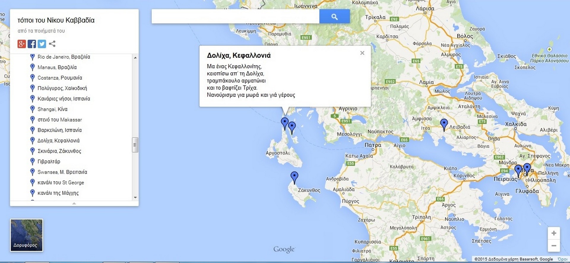 Ένας κόσμος γεμάτος ποίηση του Νίκου Καββαδία δεν μπορεί να είναι παρά ένας όμορφος κόσμος. Αυτό πρέπει να σκέφτηκε όποιος δημιούργησε τον συγκεκριμένο χάρτη στο Google Maps συνδέοντας τις καρφίτσες-τόπους με τα ποιήματα του Καββαδία.