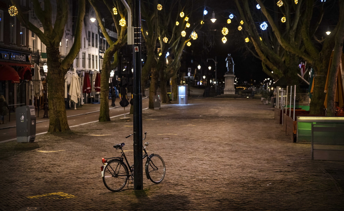 epaselect epa08947256 The Thorbeckeplein is almost empty in the center of Amsterdam, The Netherlands, 18 January 2021. The introduction of a curfew is on the table as a serious option for the cabinet. EPA/RAMON VAN FLYMEN