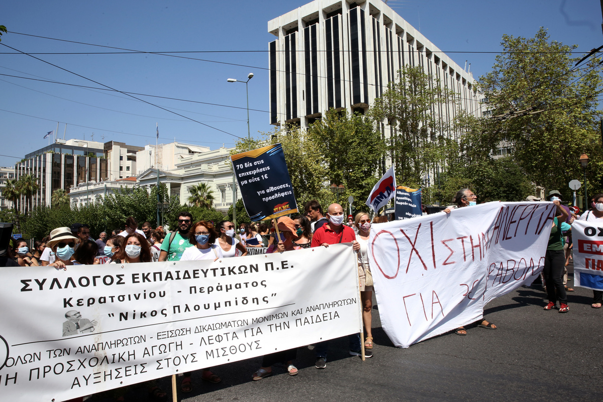 Εκατοντάδες εκπαιδευτικοί συγκεντρώθηκαν στα Προπύλαια, στο κέντρο της Αθήνας και πραγματοποίησαν πορεία μέχρι τη Βουλή. Μάλιστα ζήτησαν να συναντηθούν με την υπουργό Παιδείας, ωστόσο κάτι τέτοιο δεν έγινε.