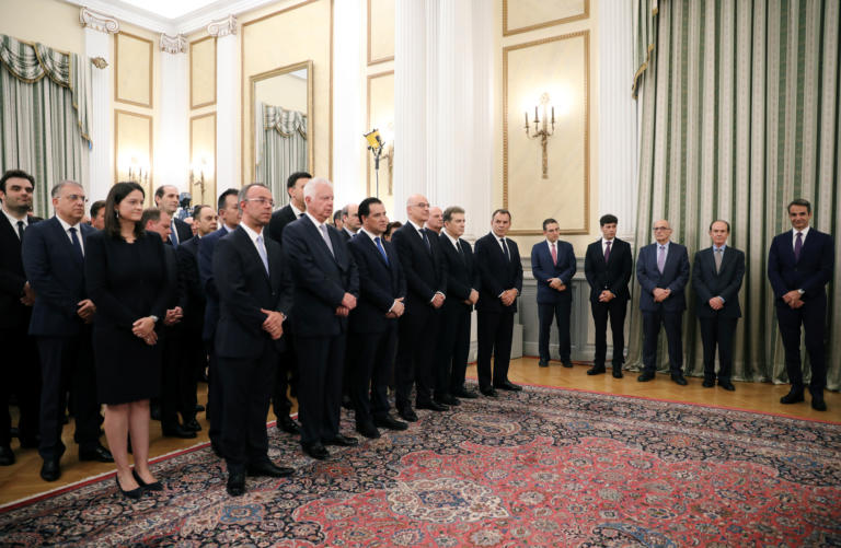 Σε κλίμα αισιοδοξίας έγινε η ορκωμοσία της νέας κυβέρνησης, στο Προεδρικό Μέγαρο, ενώπιον του Προέδρου της Δημοκρατίας Πρ. Παυλόπουλου και παρουσία του πρωθυπουργού Κυρ. Μητσοτάκη.