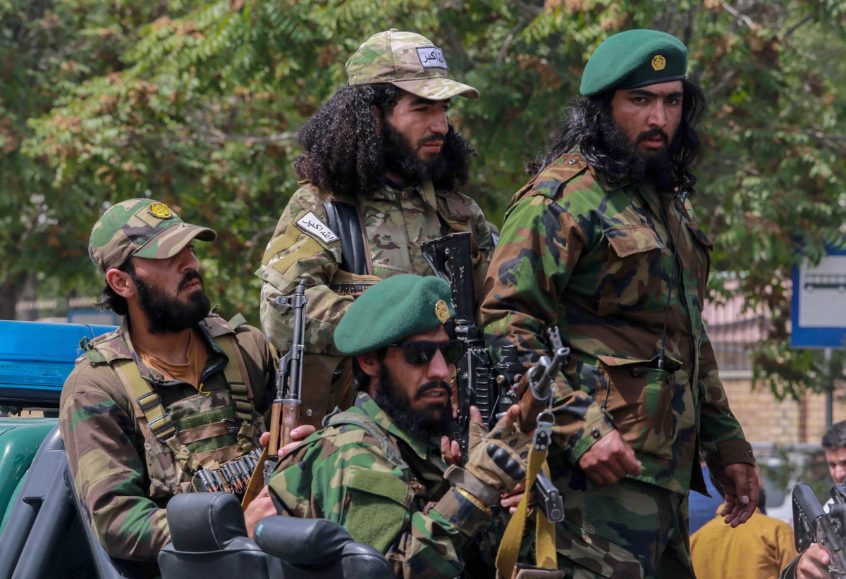 epa09495789 Taliban soldiers patrol in Kabul, Afghanistan, 29 September 2021. Lack of international recognition remains a pressing problem for the Taliban, who are not only geopolitically isolated but are also facing a major cash crunch after international financing institutions froze most of the funds Afghanistan has long relied upon for economic stability. EPA/STRINGER