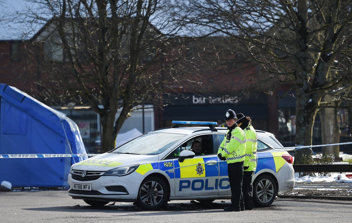 epa06614399 Police near the scene where ex Russian spy Sergei Skripal sat on a bench (L) with his daughter Yulia, in Salisbury, Wiltshire, Britain, 19 March 2018. Reports state that International chemical weapons inspectors are expected to arrive in the Britain 19 March. Sergei Skripal aged 66 and his daughter Yulia, aged 33 were found suffering from extreme exposure to a rare nerve agent in Salisbury on 04 March 2018. Skripal and his daughter Yulia remain in a 'very serious' condition. EPA/ANDY RAIN