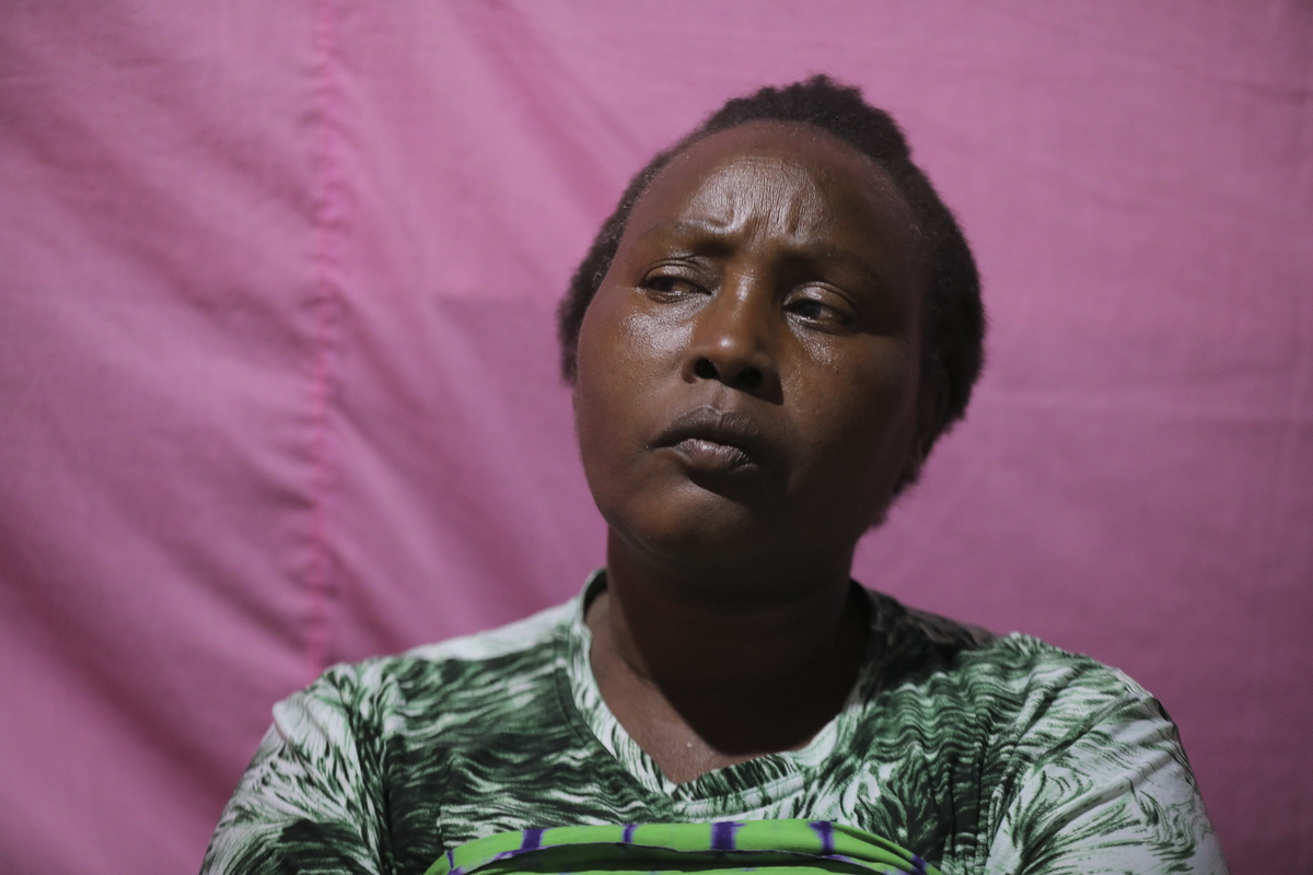 epa09547575 A Kenyan woman Rose Wanyua, sister to Agnes Wanjiru a Kenyan woman who is said to have been killed by a british soldier, looks on in her house in Majengo Slums in Nanyuki, central Kenya, 26 October 2021. British army bosses have been accused of covering up the murder of a Kenyan sex worker and mother Agnes Wanjiru who was stabbed to death in 2012 and body dumped in a septic tank by a British soldier who confessed to his colleagues of killing the woman after a night out at the Lions Court Hotel, according to Sunday Times. Wanjiru who was 21 years old then and had a 9-month-old daughter was found two months after she disappeared. After the expose by the UK newspaper Sunday Times, the British military known as the British Royal Military Police has re-launched investigations into the allegations with the deceased family demanding for her justice and compensation. EPA/DANIEL IRUNGU