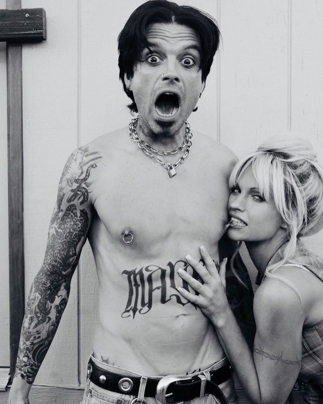 Η Λίλι Τζέιμς ως Πάμελα Άντερσον και κάτω ο Σεμπάστιαν Σταν (πρωταγωνιστής στο «The Falcon and the Winter Soldier») ως Τόμι Λι.