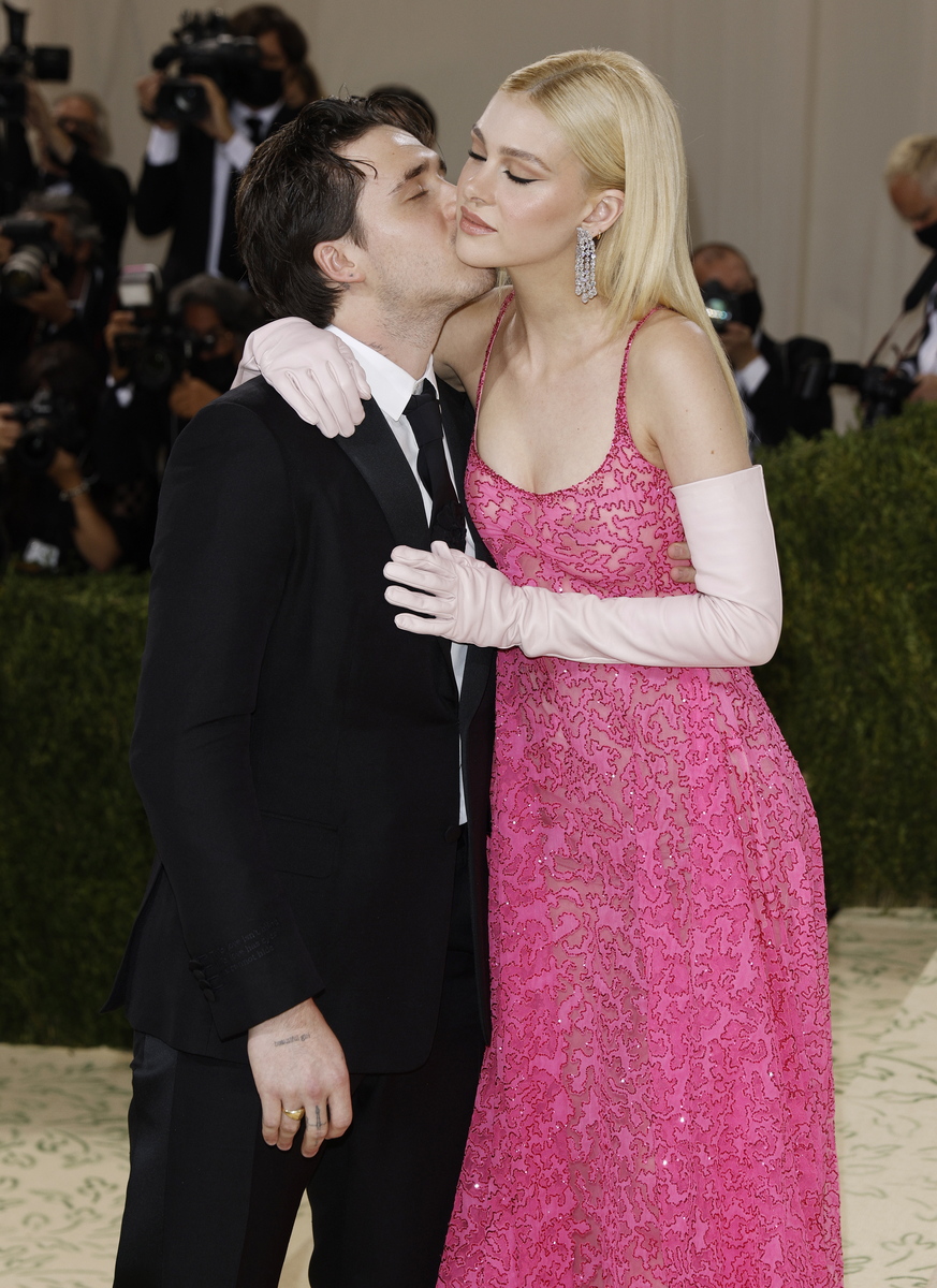 epa09466500 Brooklyn Beckham (R) and Nicola Peltz pose on the red carpet for the 2021 Met Gala, the annual benefit for the Metropolitian Museum of Art's Costume Institute, in New York, New York, USA, 13 September 2021. The event coincides with the Met Costume Institute's first two-part exhibition, 'In America: A Lexicon of Fashion' which opens 18 September 2021, to be followed by 'In America: An Anthology of Fashion' which opens 05 May 2022 and both conclude 05 September 2022. EPA/JUSTIN LANE