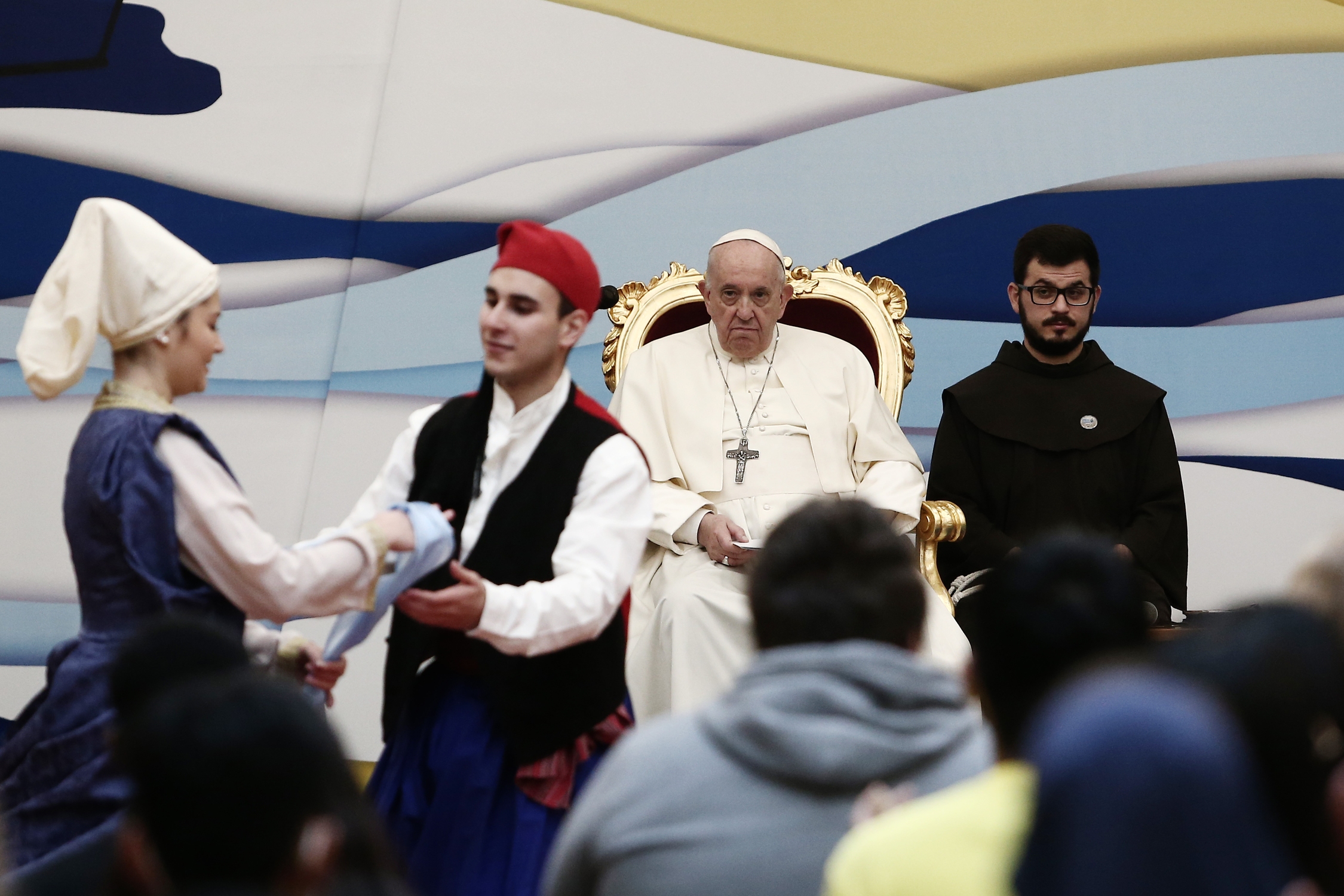 Εξεπλάγην και εντυπωσιάστηκα από τις μαρτυρίες σας. Τις είχα διαβάσει και τώρα μαζί σας θα ήθελα να αναφερθώ σε κάποια σημεία από αυτές. Κατερίνα, μας μίλησες για τα προβλήματα που συνάντησες με την πίστη σου και θα ήθελα να πω σε σένα και σε όλους σας ας μη φοβόμαστε την αμφιβολία. Η αμφιβολία δεν είναι απώλεια της πίστης. Μη φοβάστε την αμφιβολία. Αντιθέτως, οι αμφιβολίες είναι η βιταμίνη της πίστης. Βοηθούν στην ενίσχυσή της, στη συνειδητοποίηση, στη συνειδητότητα, στην ανάπτυξή της για να γίνει τελικά πιο ώριμη, μας βοηθούν να περάσουμε τον δρόμο προς την ωριμότητα. Αυτή τη διαδρομή μαζί με τον Ιησού, που μας παίρνει από το χέρι, μας ενθαρρύνει και όταν πέφτουμε μας βοηθάει να ξανασηκωθούμε, δεν φοβάται πότε. Πρόκειται για μα ιστορία αγάπης, στην οποία προχωρούμε πάντα μαζί, μέρα τη μέρα. Σε αυτή την ιστορία αγάπης υπάρχουν κάποιες στιγμές που κανείς πρέπει να αναρωτηθεί και αυτό είναι καλό, είναι καλό γιατί ενισχύει ενδυναμώνει τη σχέση αυτή. Και αυτό είναι εξαιρετικά σημαντικό, είναι σημαντικό για εσάς. Εσείς δεν μπορείτε να είστε τυφλοί όταν στη διαδρομή αυτή της πίστης σας πρέπει οπωσδήποτε να αναρωτηθείτε. Θα ήθελα να υπογραμμίσω στη μαρτυρία της Κατερίνας το εξής: Κάποιες φορές ενώπιον των δυσκολιών της ζωής, τις στιγμές της απογοήτευσης, της μοναξιάς, μπορεί να πλημμυρίσει την καρδιά μας η αμφιβολία.