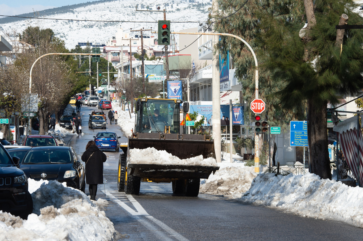 Όχημα του δήμου Πεντέλης συμβάλλει στον εκχιονισμό δρόμων των Μελισσίων, την Τετάρτη 26 Ιανουαρίου 2022Σε αργία βρίσκονται και σήμερα η Αττική, η Βοιωτία, τα Δωδεκάνησα, η Εύβοια, η Κρήτη και οι Κυκλάδες καθώς οι περιοχές αυτές κηρύχθηκαν σε κατάσταση ειδικής κινητοποίησης πολιτικής προστασίας λόγω των έντονων καιρικών φαινομένων που εκδηλώθηκαν. ΑΠΕ-ΜΠΕ/ΑΠΕ-ΜΠΕ/ΜΑΡΙΑ ΣΙΤΑ